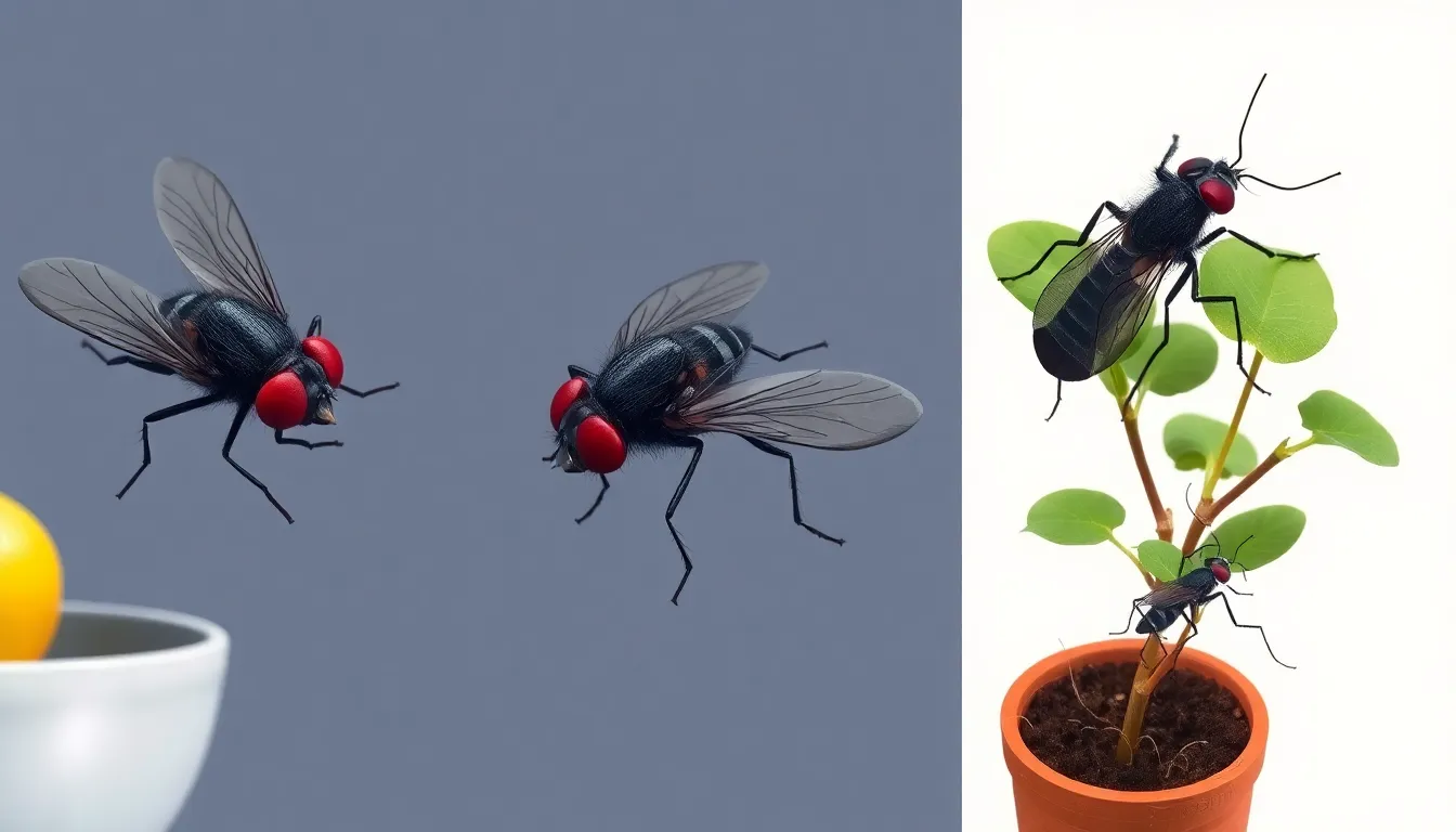 Fruit flies reproduce rapidly, capable of laying hundreds of eggs on rotting fruit within a week. Drain flies breed in stagnant water, so clogged pipes or dirty drains provide ideal breeding sites. Fungus gnats thrive in moist soil, where they lay their eggs near decaying organic matter. A few days after hatching, larvae begin feeding on the roots of houseplants, which can harm plant health. Each fly type’s unique breeding habits suggest specific areas for focused pest control efforts.